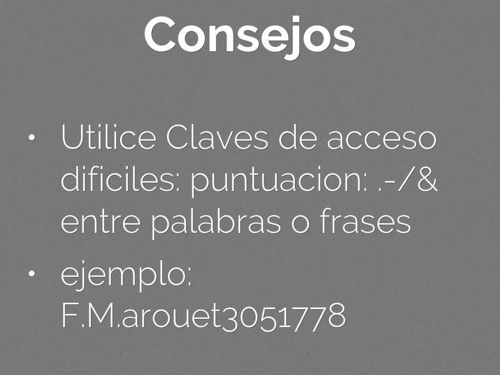 Utilice Claves de acceso dificiles: puntuacion: .-/& entre palabras o frases