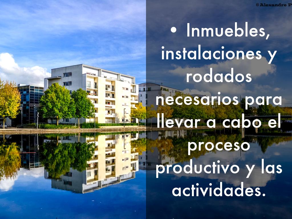 • Inmuebles, instalaciones y rodados necesarios para llevar a cabo el proceso productivo y las actividades.