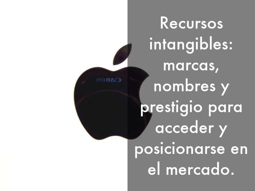 Recursos intangibles: marcas, nombres y prestigio para acceder y posicionarse en el mercado.
