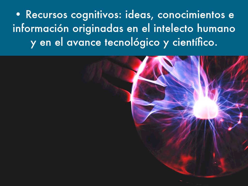 • Recursos cognitivos: ideas, conocimientos e información originadas en el intelecto humano y en el avance tecnológico y científico.