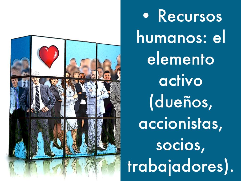 • Recursos humanos: el elemento activo (dueños, accionistas, socios, trabajadores).