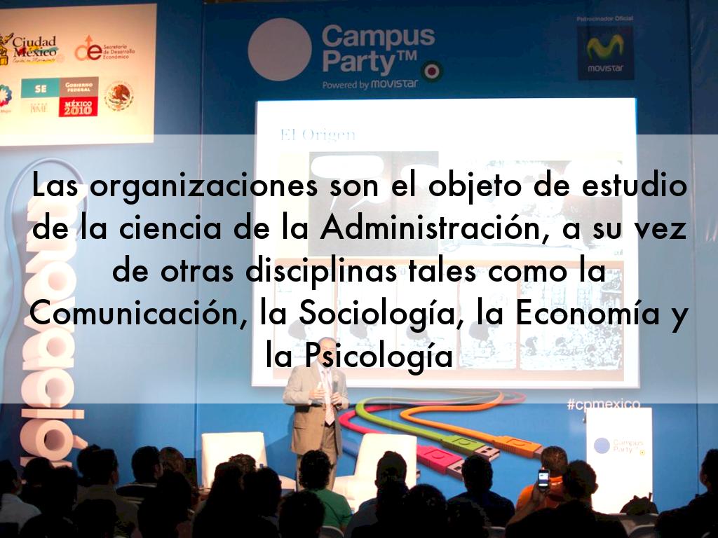 Las organizaciones son el objeto de estudio de la ciencia de la Administración, a su vez de otras disciplinas tales como la Comunicación, la Sociología, la Economía y la Psicología
