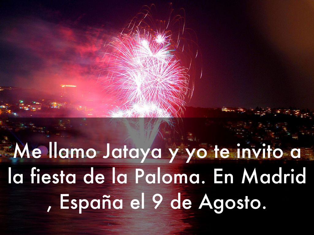 Me llamo Jataya y yo te invito a la fiesta de la Paloma. En Madrid , España el 9 de Agosto.