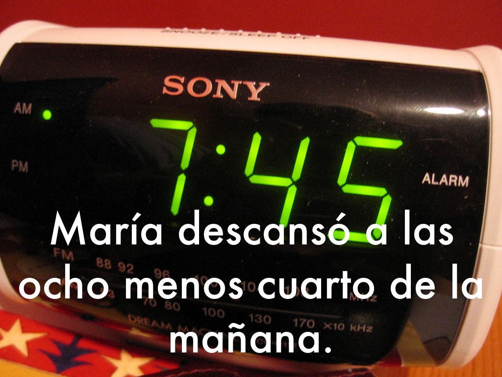 María descansó a las ocho menos cuarto de la mañana.