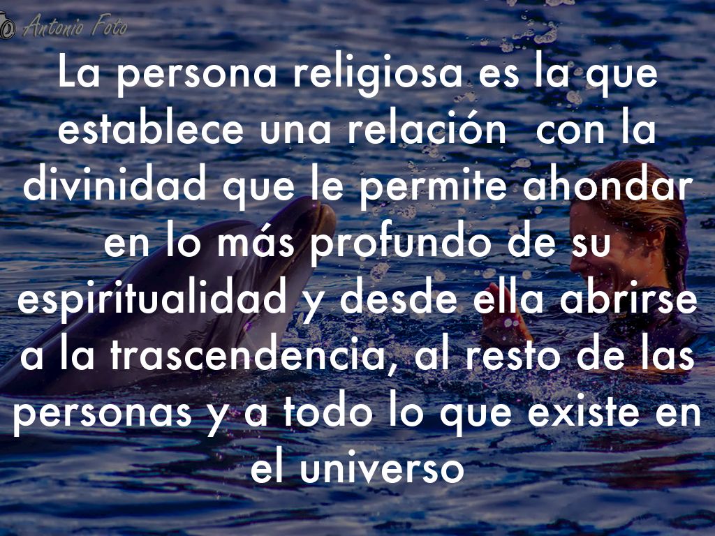 La persona religiosa es la que establece una relación con la divinidad que le permite ahondar en lo más profundo de su espiritualidad y desde ella abrirse a la trascendencia, al resto de las personas y a todo lo que existe en el universo