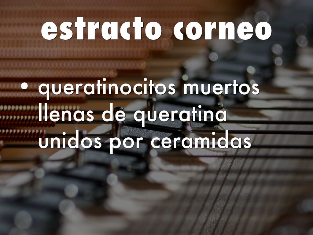 queratinocitos muertos llenas de queratina unidos por ceramidas