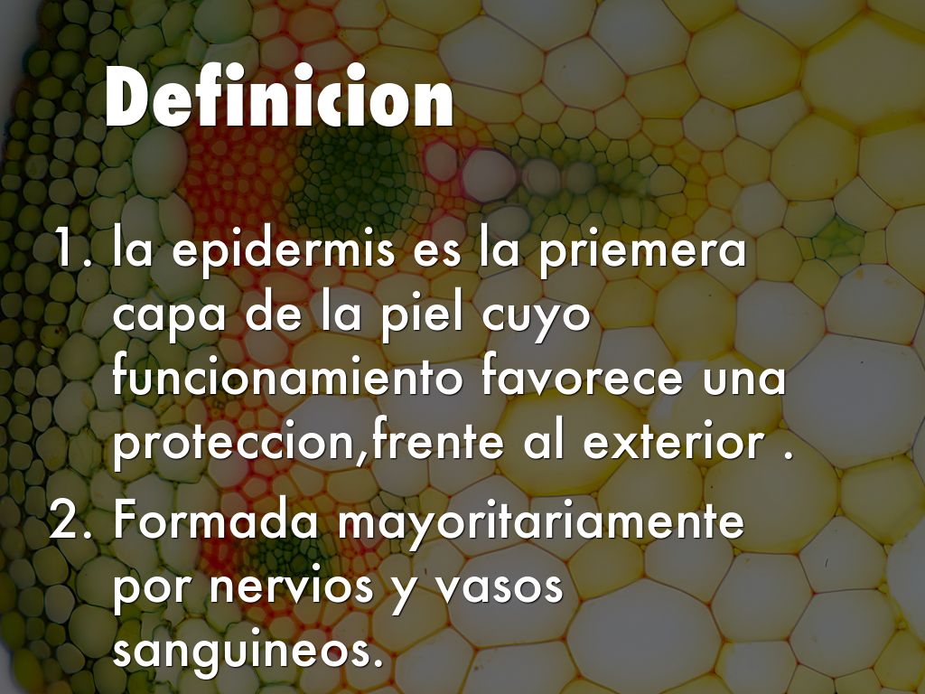 la epidermis es la priemera capa de la piel cuyo funcionamiento favorece una proteccion,frente al exterior .