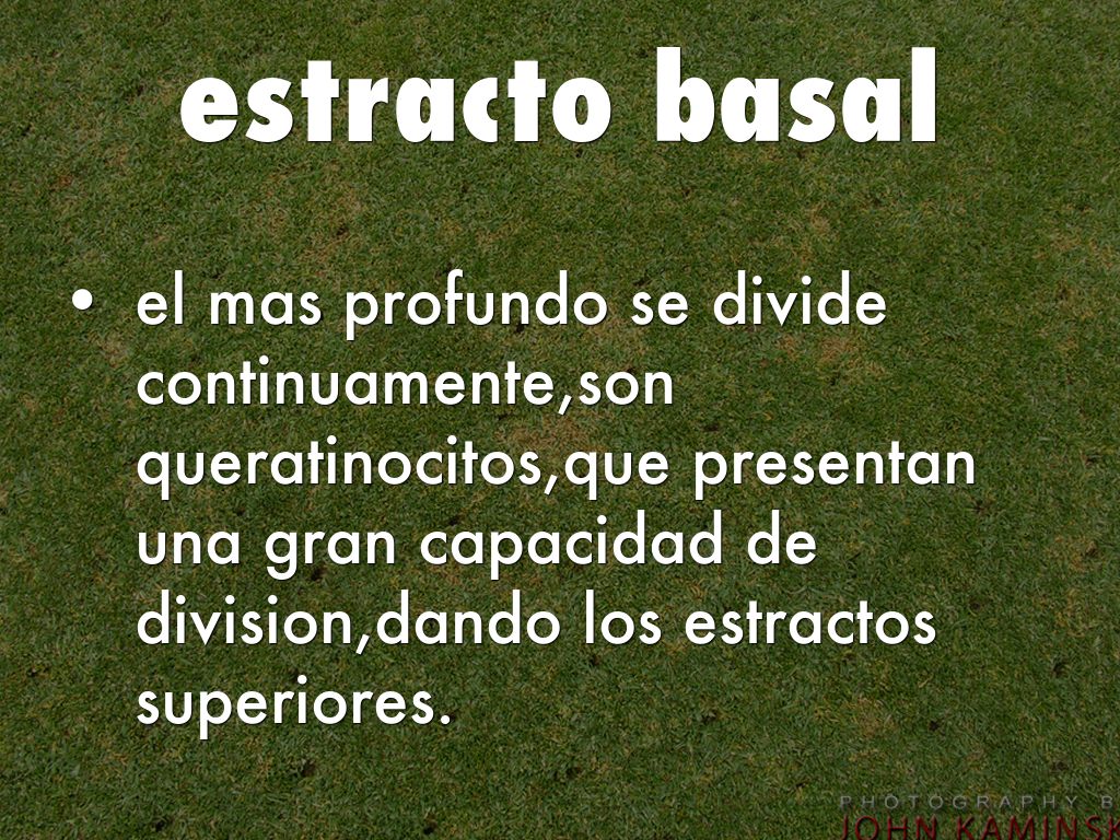 el mas profundo se divide continuamente,son queratinocitos,que presentan una gran capacidad de division,dando los estractos superiores.