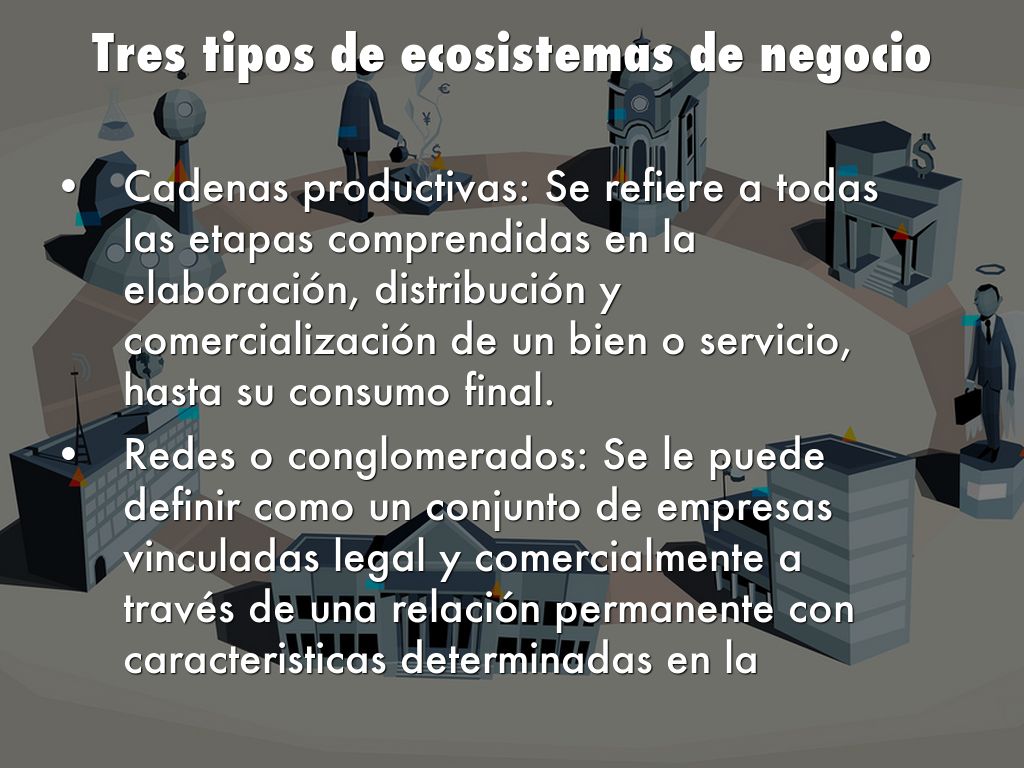 Cadenas productivas: Se refiere a todas las etapas comprendidas en la elaboración, distribución y comercialización de un bien o servicio, hasta su consumo final.
