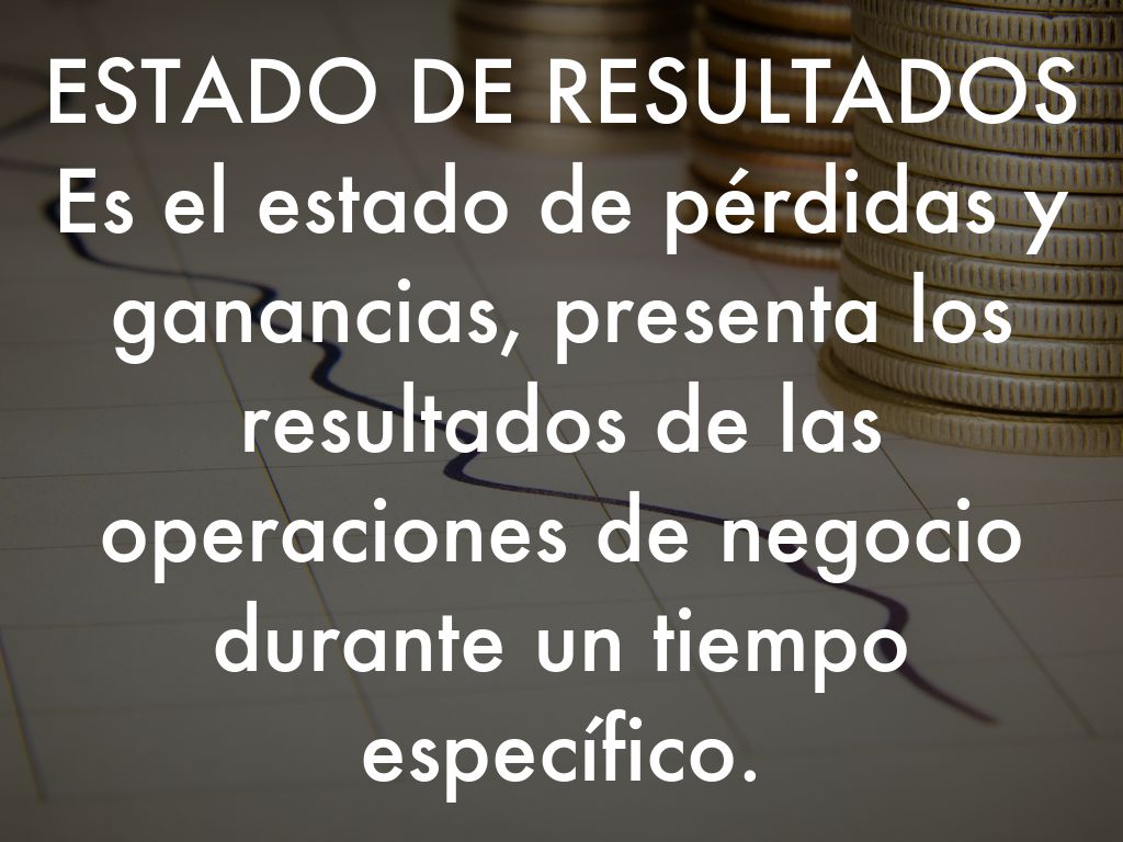 Es el estado de pérdidas y ganancias, presenta los resultados de las operaciones de negocio durante un tiempo específico.