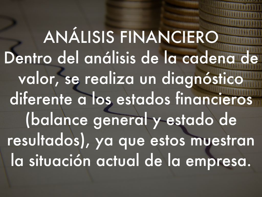 Dentro del análisis de la cadena de valor, se realiza un diagnóstico diferente a los estados financieros (balance general y estado de resultados), ya que estos muestran la situación actual de la empresa.