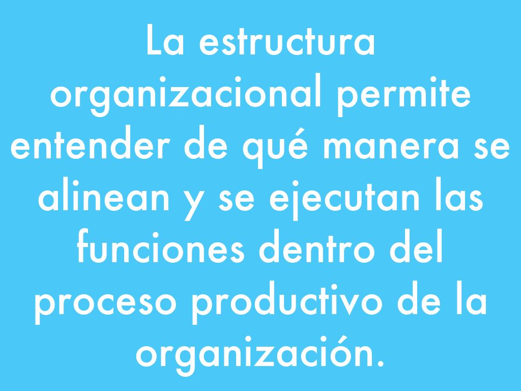 La estructura organizacional permite entender de qué manera se alinean y se ejecutan las funciones dentro del proceso productivo de la organización.