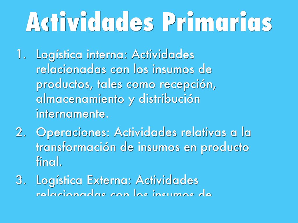 • Operaciones: Actividades relativas a la transformación de insumos en producto final.