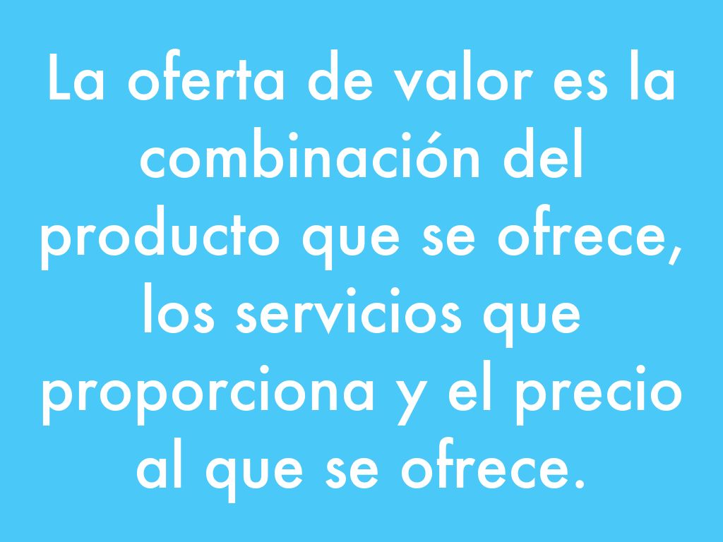 La oferta de valor es la combinación del producto que se ofrece, los servicios que proporciona y el precio al que se ofrece.