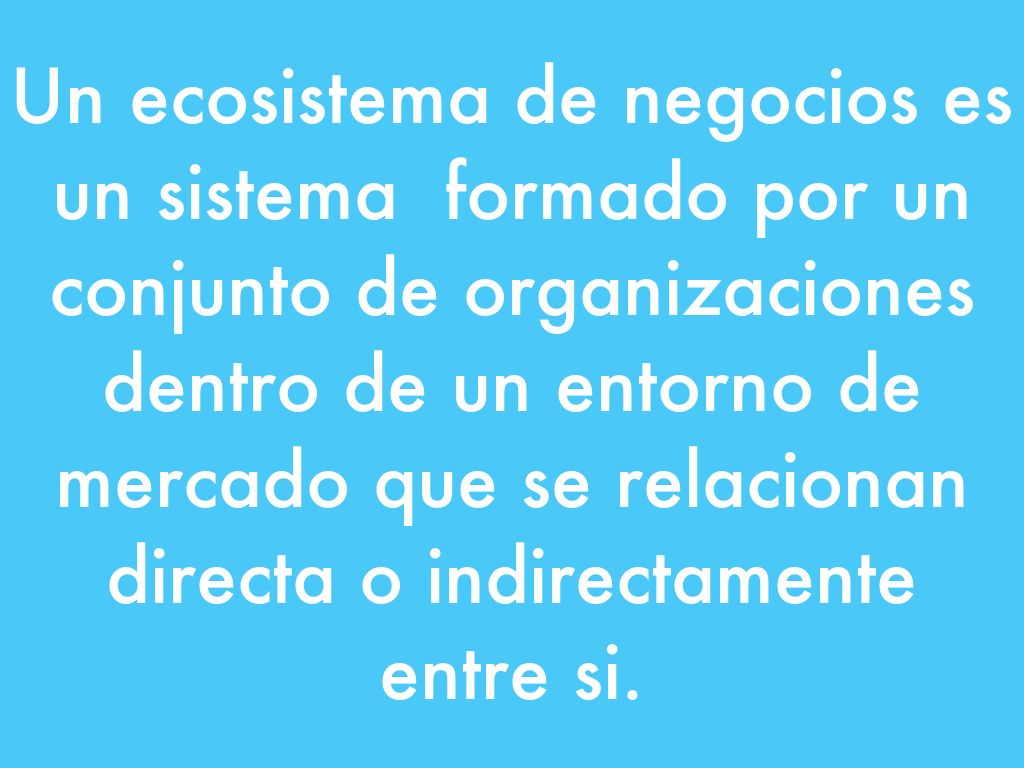 Un ecosistema de negocios es un sistema formado por un conjunto de organizaciones dentro de un entorno de mercado que se relacionan directa o indirectamente entre si.