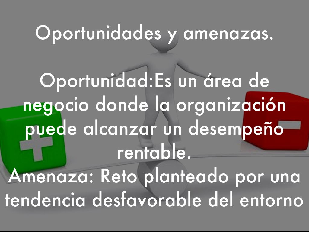 Oportunidad:Es un área de negocio donde la organización puede alcanzar un desempeño rentable.