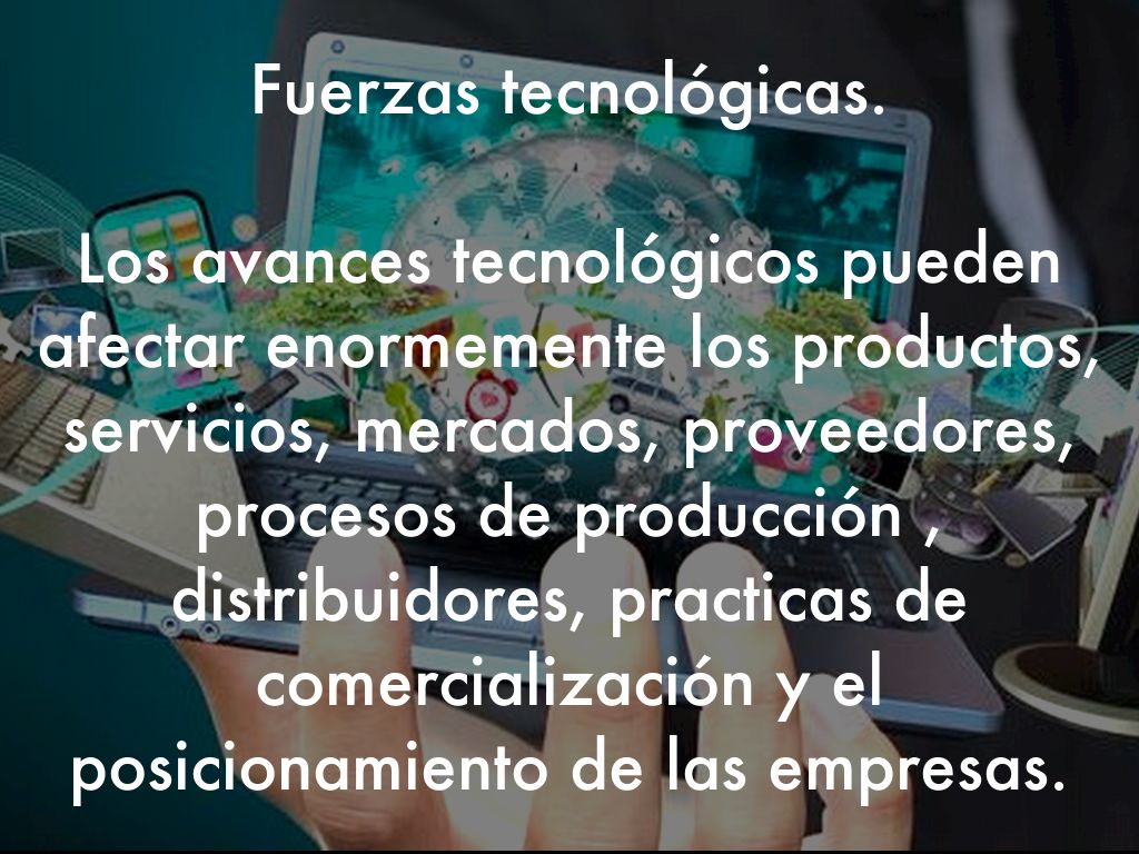 Los avances tecnológicos pueden afectar enormemente los productos, servicios, mercados, proveedores, procesos de producción , distribuidores, practicas de comercialización y el posicionamiento de las empresas.