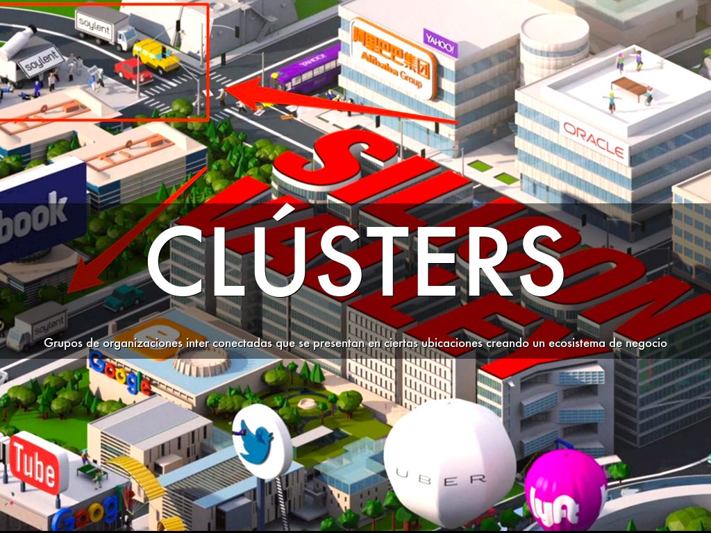 Grupos de organizaciones inter conectadas que se presentan en ciertas ubicaciones creando un ecosistema de negocio