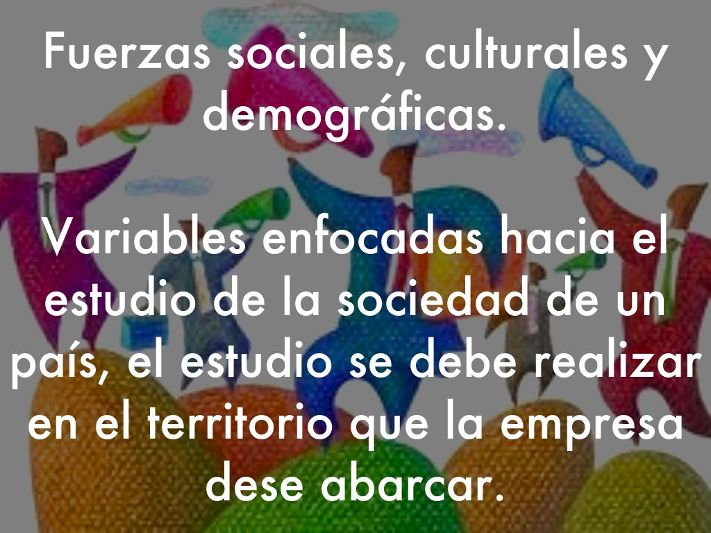 Variables enfocadas hacia el estudio de la sociedad de un país, el estudio se debe realizar en el territorio que la empresa dese abarcar.