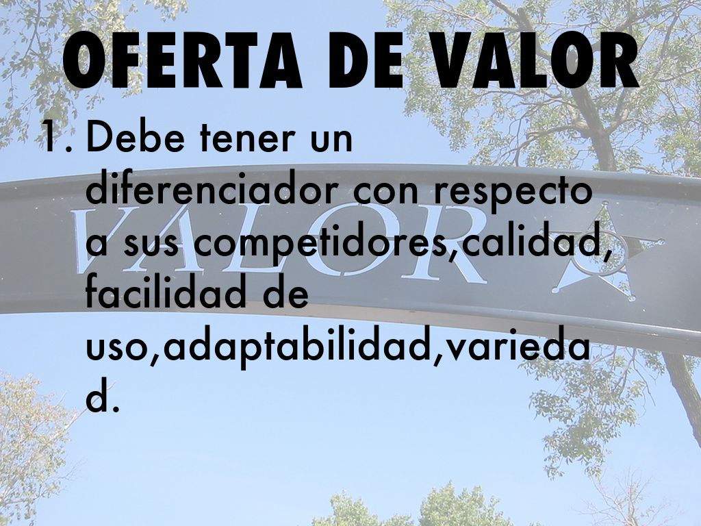 Debe tener un diferenciador con respecto a sus competidores,calidad, facilidad de uso,adaptabilidad,variedad.
