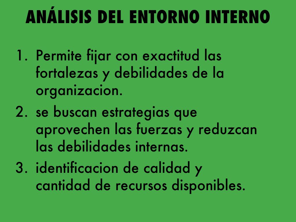 Permite fijar con exactitud las fortalezas y debilidades de la organizacion.