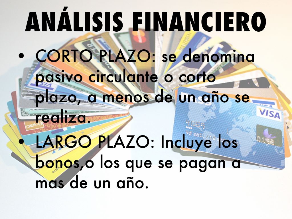 CORTO PLAZO: se denomina pasivo circulante o corto plazo, a menos de un año se realiza.