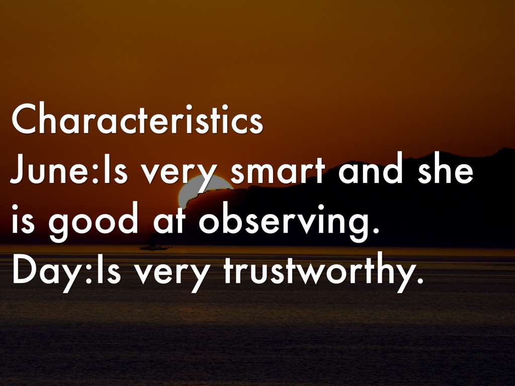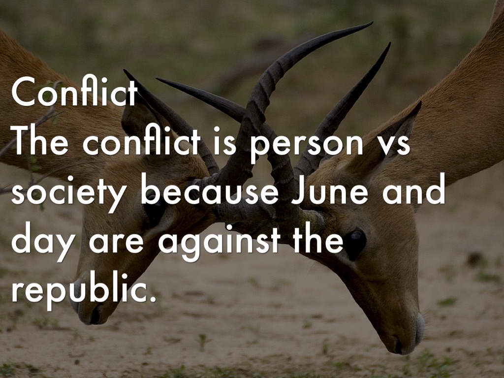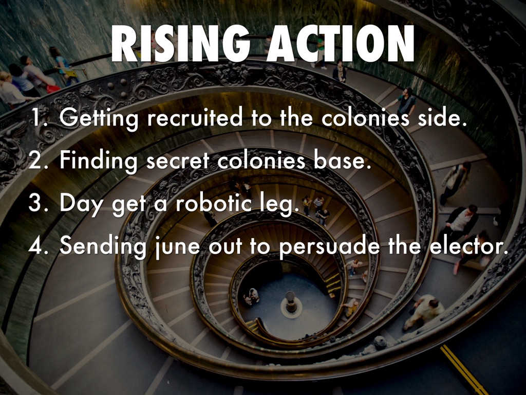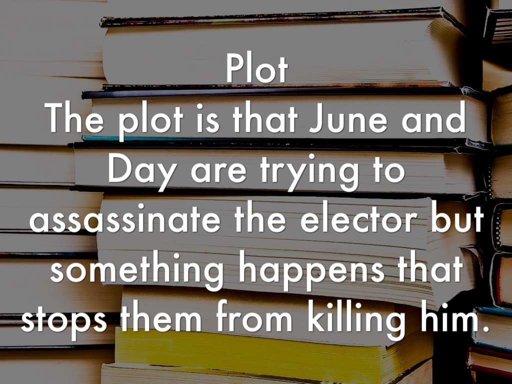 The plot is that June and Day are trying to assassinate the elector but something happens that stops them from killing him.