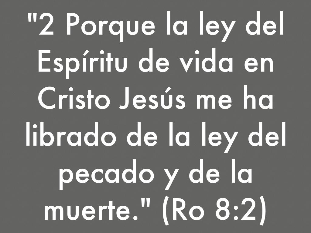 "2 Porque la ley del Espíritu de vida en Cristo Jesús me ha librado de la ley del pecado y de la muerte." (Ro 8:2)