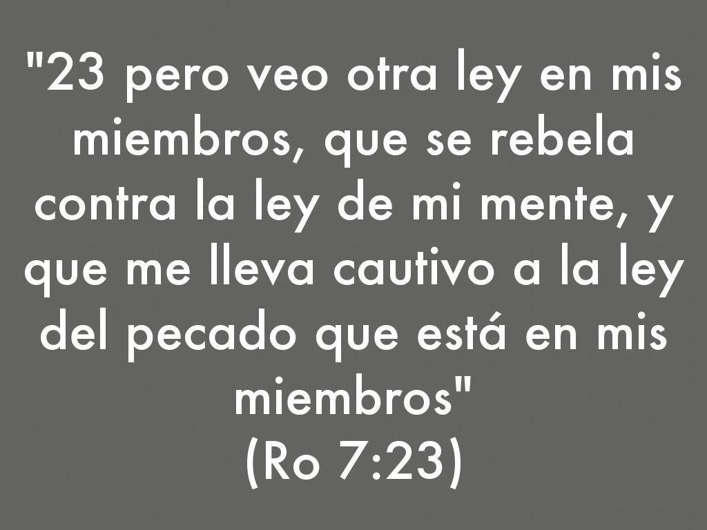 "23 pero veo otra ley en mis miembros, que se rebela contra la ley de mi mente, y que me lleva cautivo a la ley del pecado que está en mis miembros"