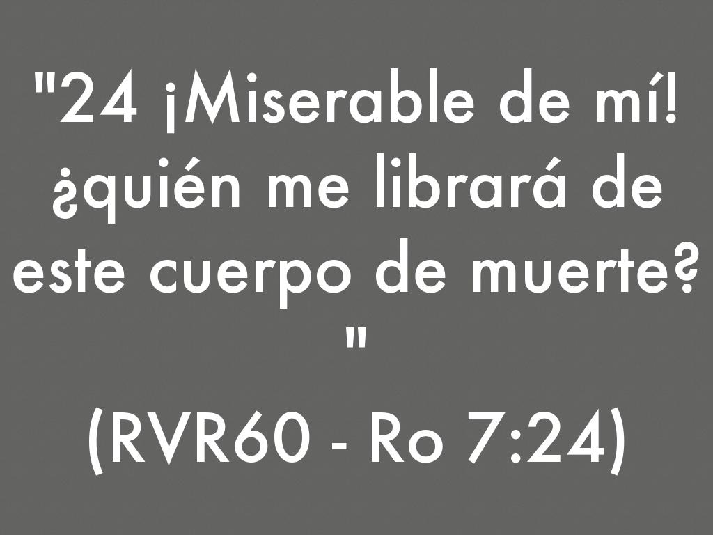"24 ¡Miserable de mí! ¿quién me librará de este cuerpo de muerte? "