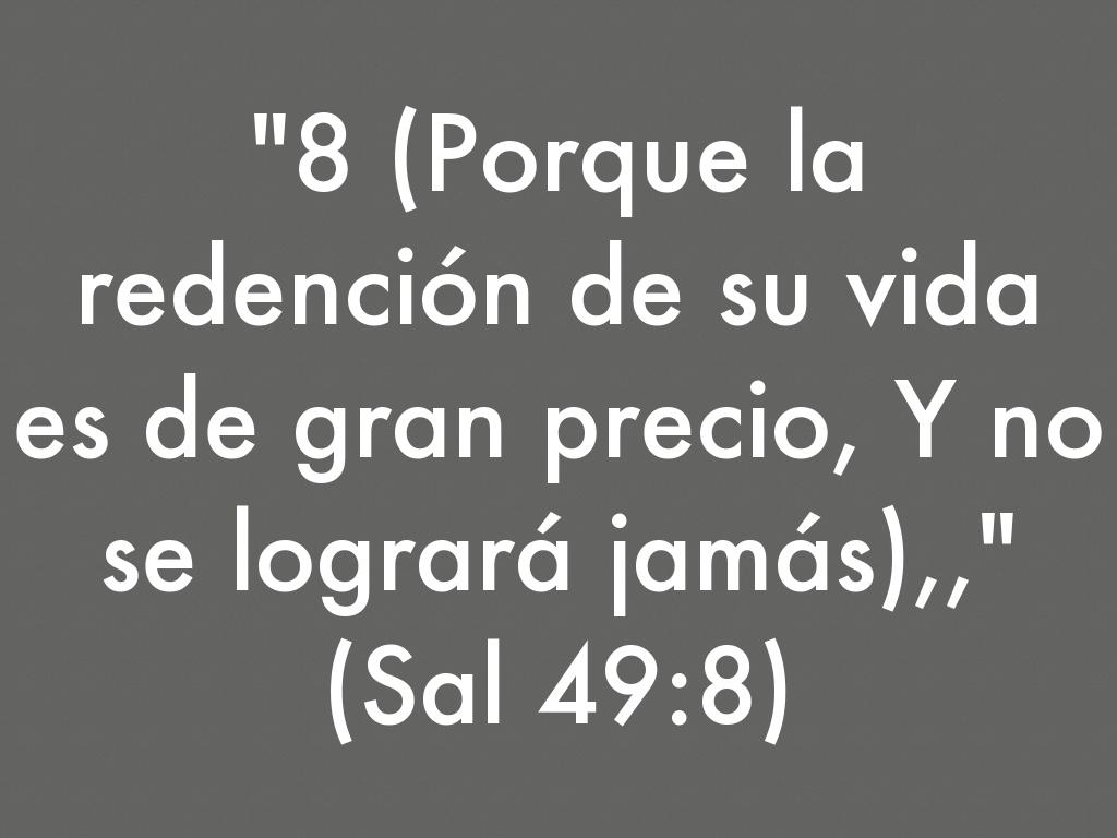 "8 (Porque la redención de su vida es de gran precio, Y no se logrará jamás),," (Sal 49:8)