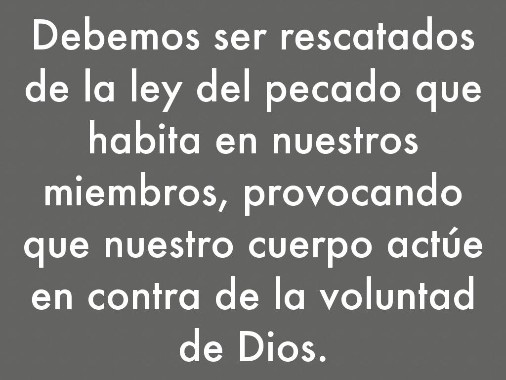Debemos ser rescatados de la ley del pecado que habita en nuestros miembros, provocando que nuestro cuerpo actúe en contra de la voluntad de Dios.