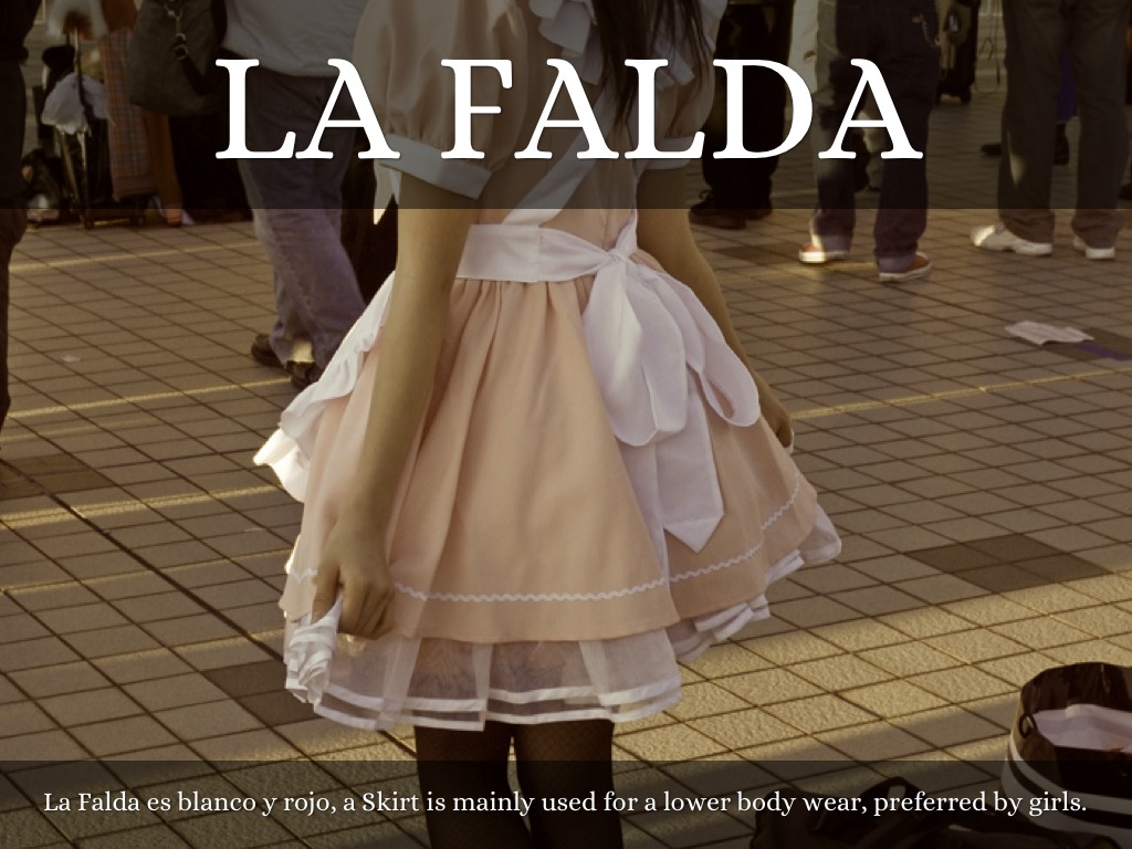 La Falda es blanco y rojo, a Skirt is mainly used for a lower body wear, preferred by girls.