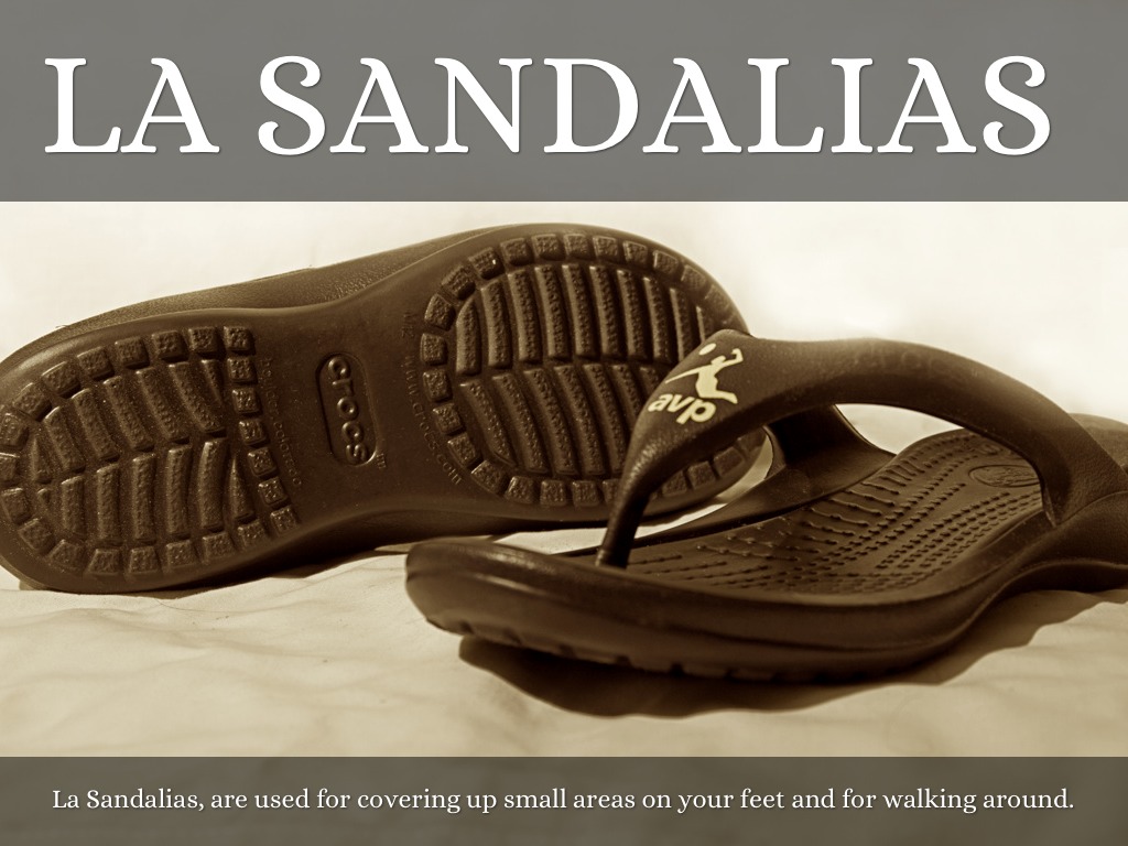La Sandalias, are used for covering up small areas on your feet and for walking around.
