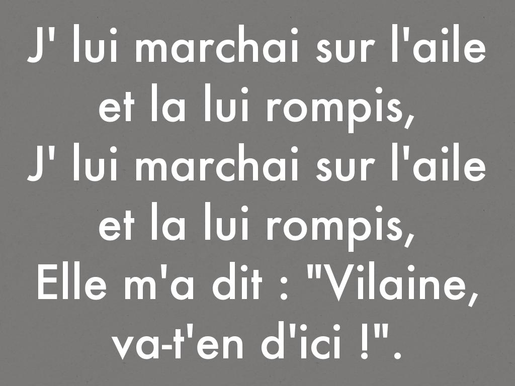 Ah ! Si mon moine voulait danser ! Ah ! Si mon moine voulait danser ! Un capuchon je lui donnerais Un capuchon je lui donnerais Refrain Danse, mon moine, danse ! Tu n'entends pas la danse. Tu n'entends pas mon moulin lon la, Tu n'entends pas mon moulin marcher.
