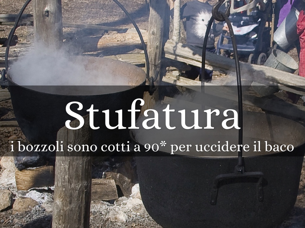i bozzoli sono immersi in acqua calda per ammorbidire la sericina