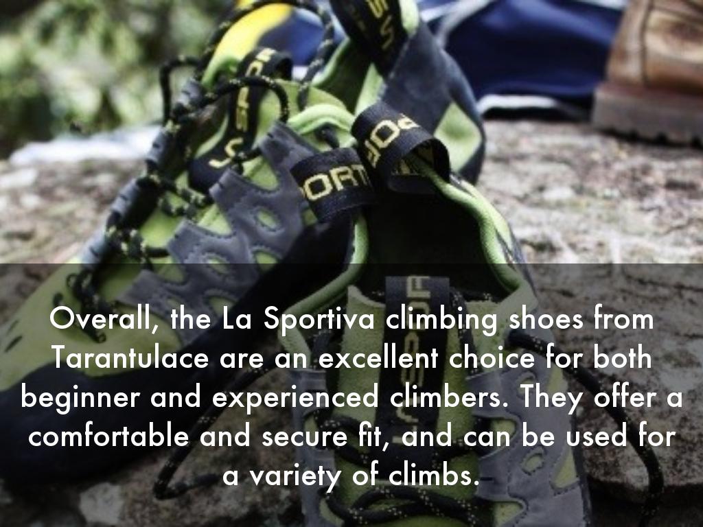 Overall, the La Sportiva climbing shoes from Tarantulace are an excellent choice for both beginner and experienced climbers. They offer a comfortable and secure fit, and can be used for a variety of climbs.