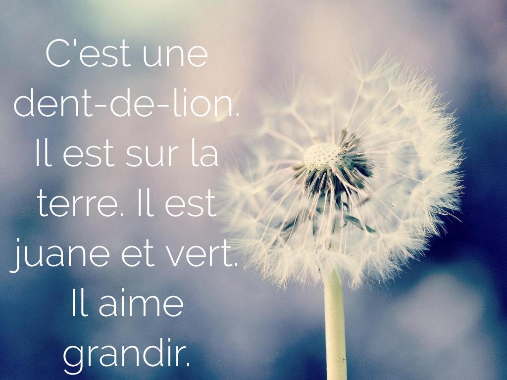 Il est sur la terre. Il est juane et vert. Il aime grandir.