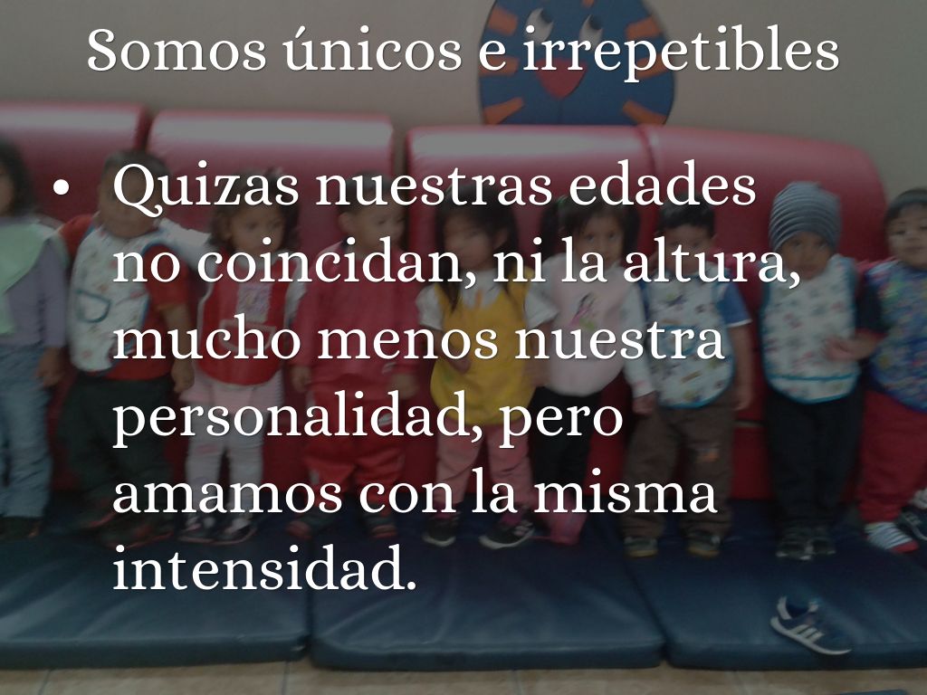 Quizas nuestras edades no coincidan, ni la altura, mucho menos nuestra personalidad, pero amamos con la misma intensidad.