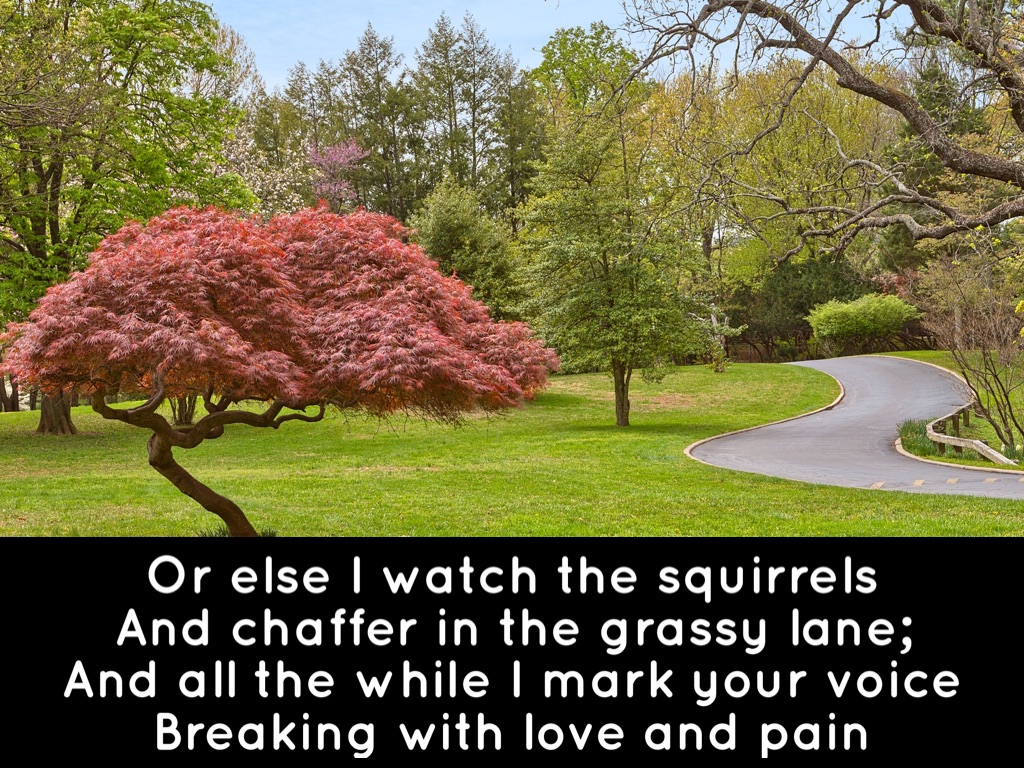 And all the while I mark your voice