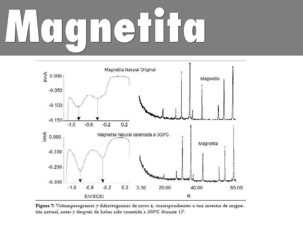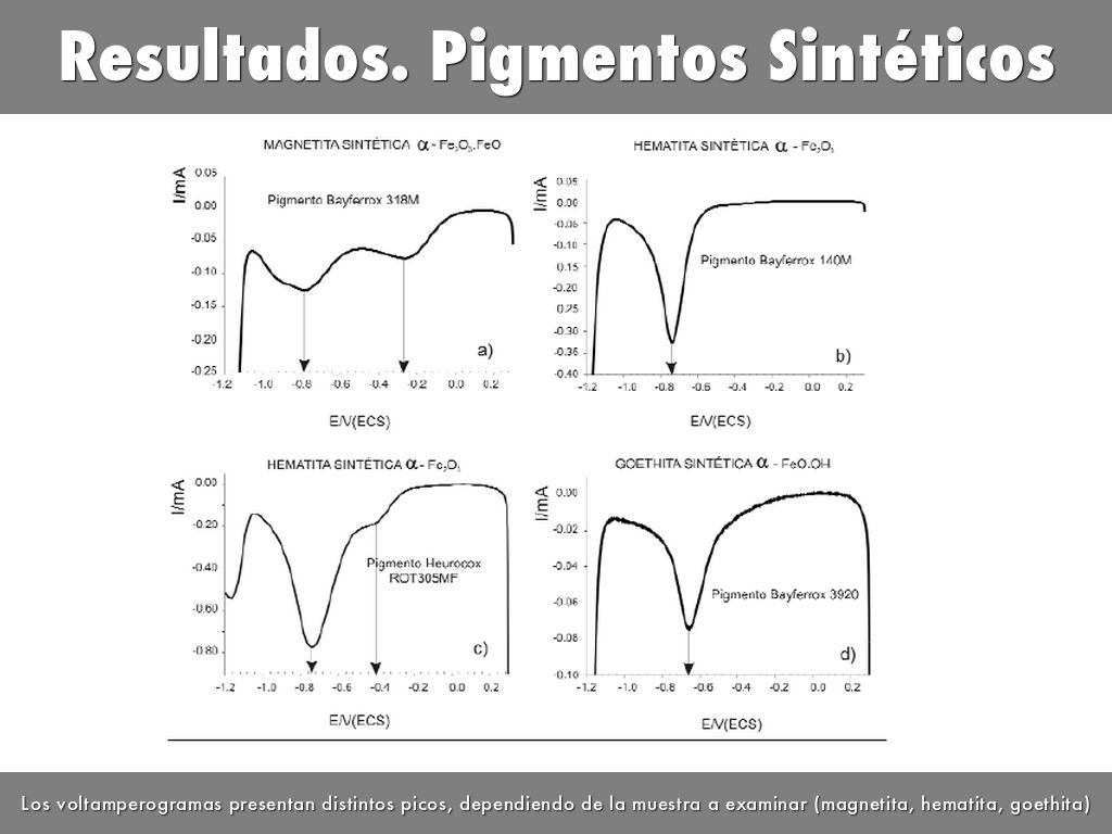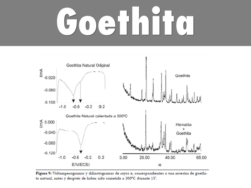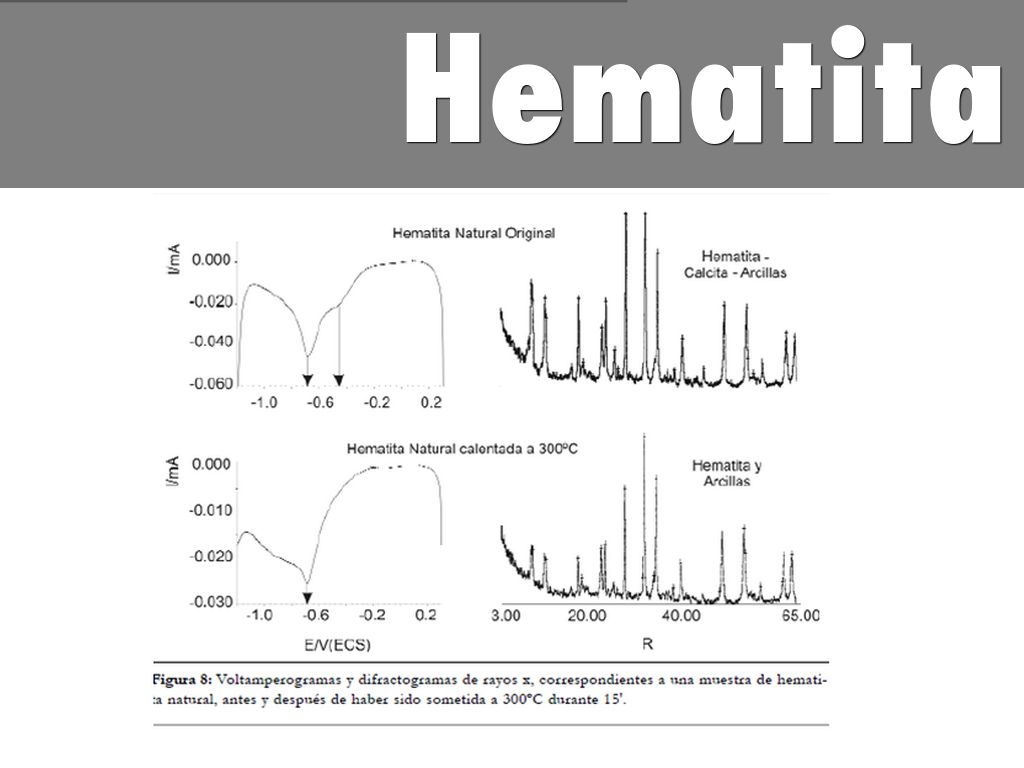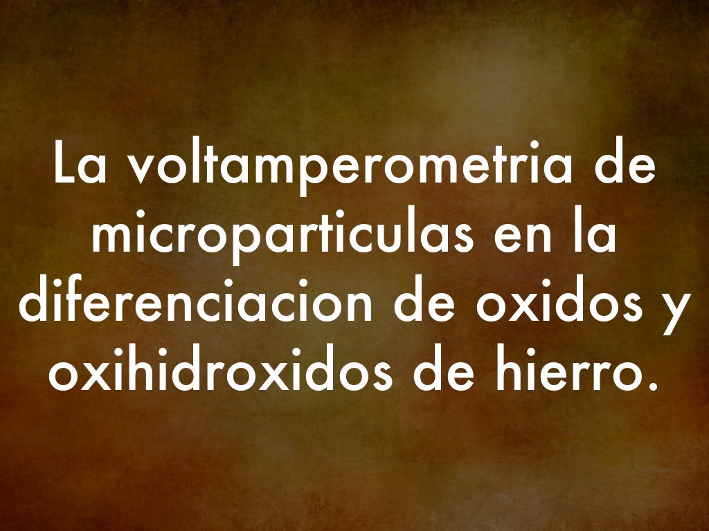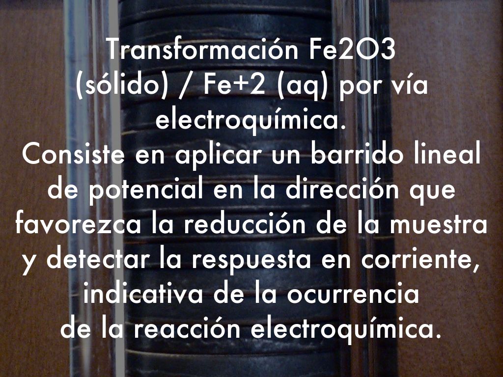 Transformación Fe2O3 (sólido) / Fe+2 (aq) por vía electroquímica. Consiste en aplicar un barrido lineal de potencial en la dirección que favorezca la reducción de la muestra y detectar la respuesta en corriente, indicativa de la ocurrencia de la reacción electroquímica.