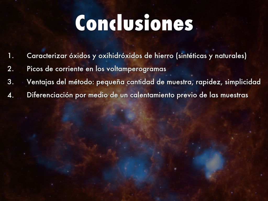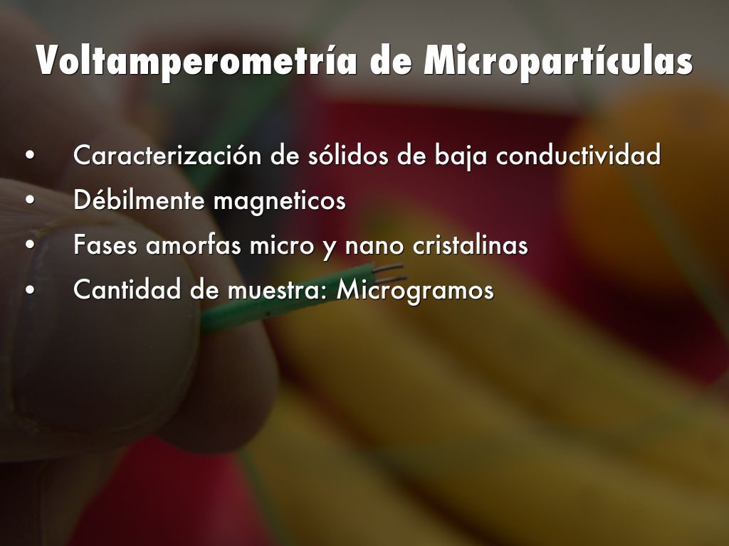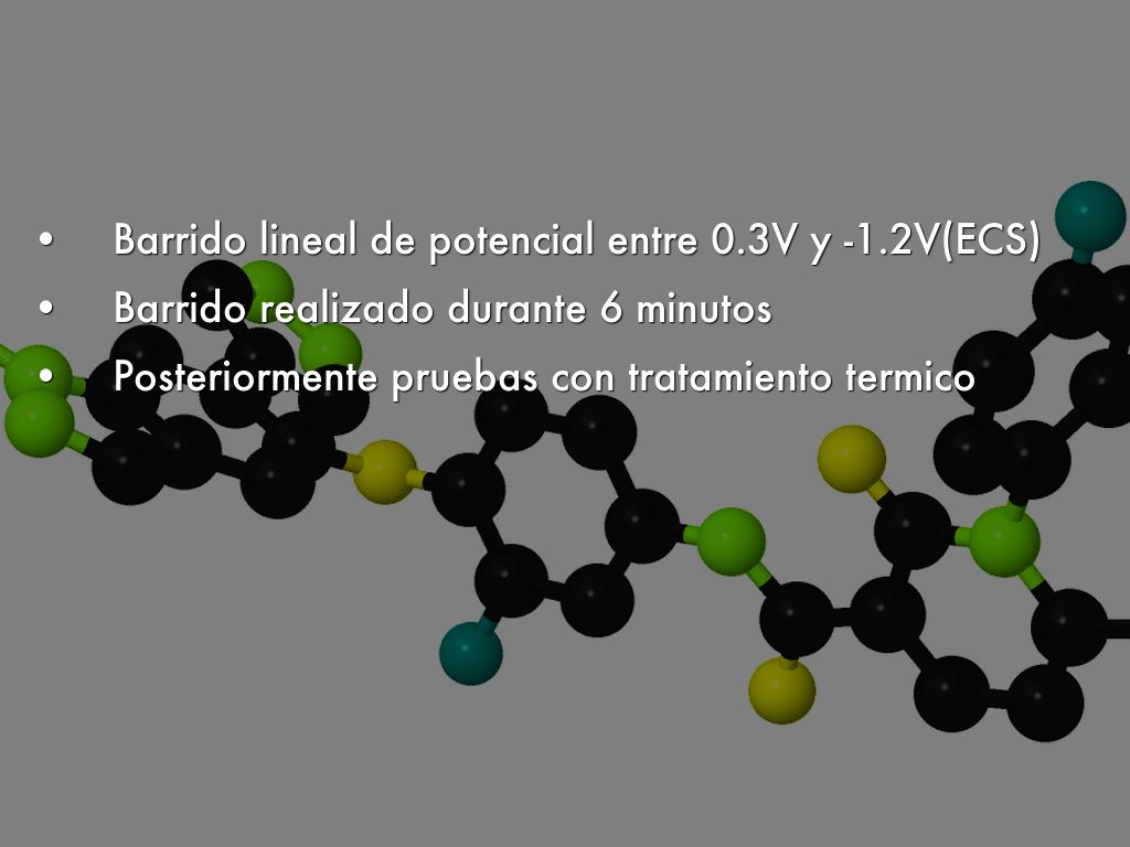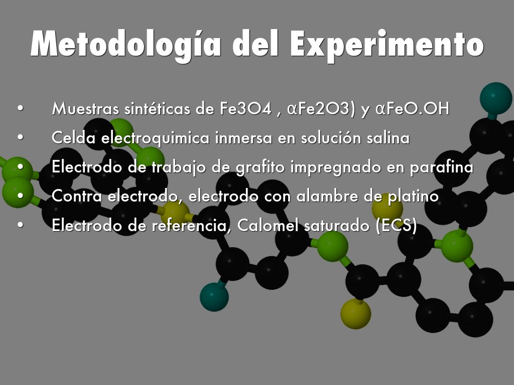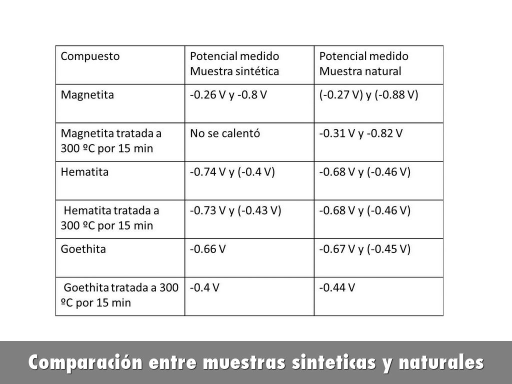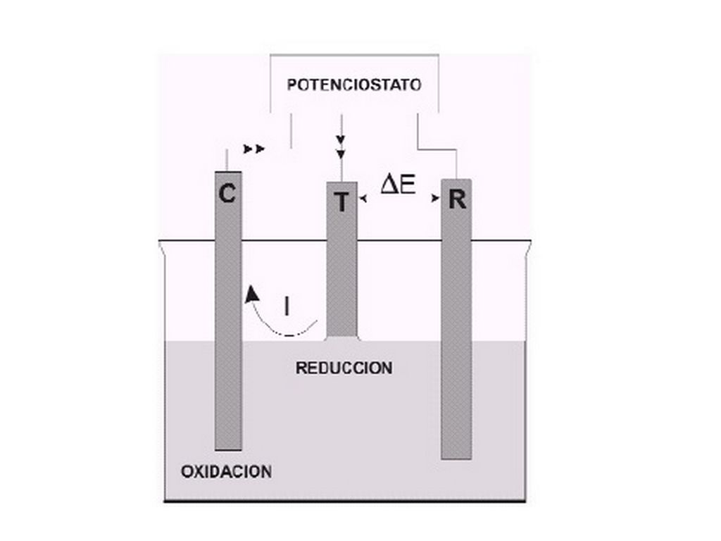 Transformación Fe2O3 (sólido) / Fe+2 (aq) por vía electroquímica. Consiste en aplicar un barrido lineal de potencial en la dirección que favorezca la reducción de la muestra y detectar la respuesta en corriente, indicativa de la ocurrencia de la reacción electroquímica.