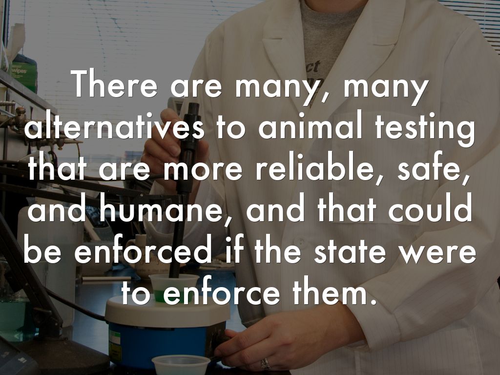 There are many, many alternatives to animal testing that are more reliable, safe, and humane, and that could be enforced if the state were to enforce them.