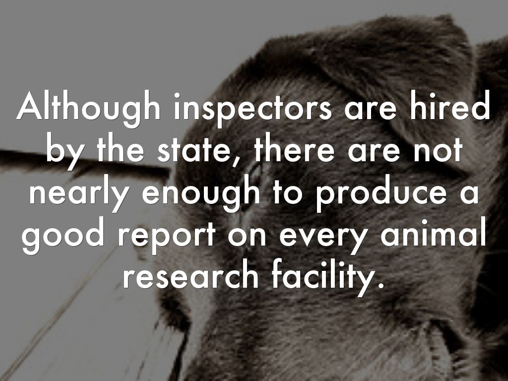 Although inspectors are hired by the state, there are not nearly enough to produce a good report on every animal research facility.