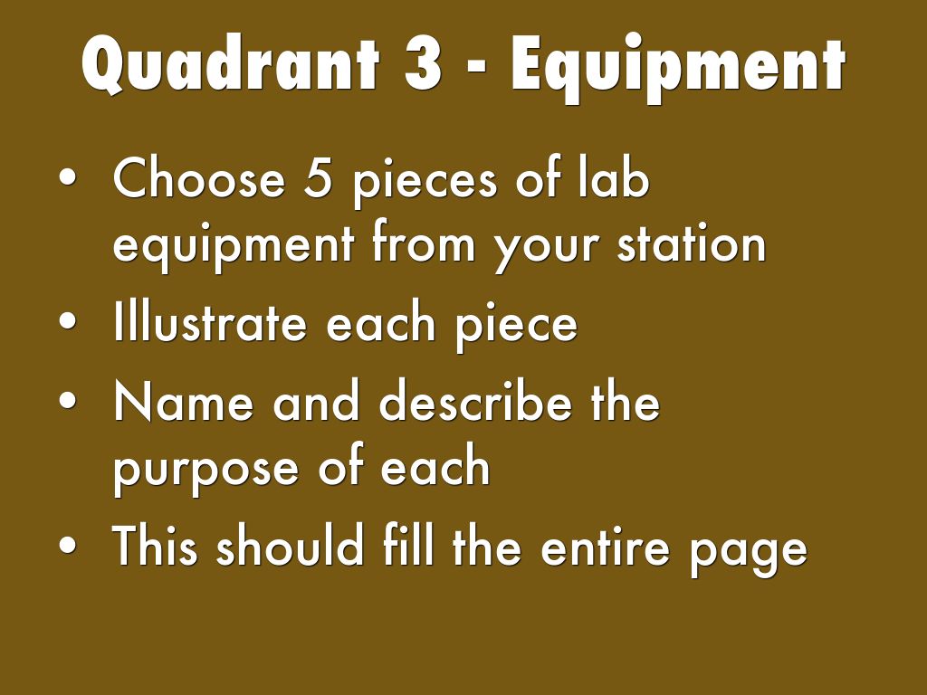 - Equipment (name and use)
