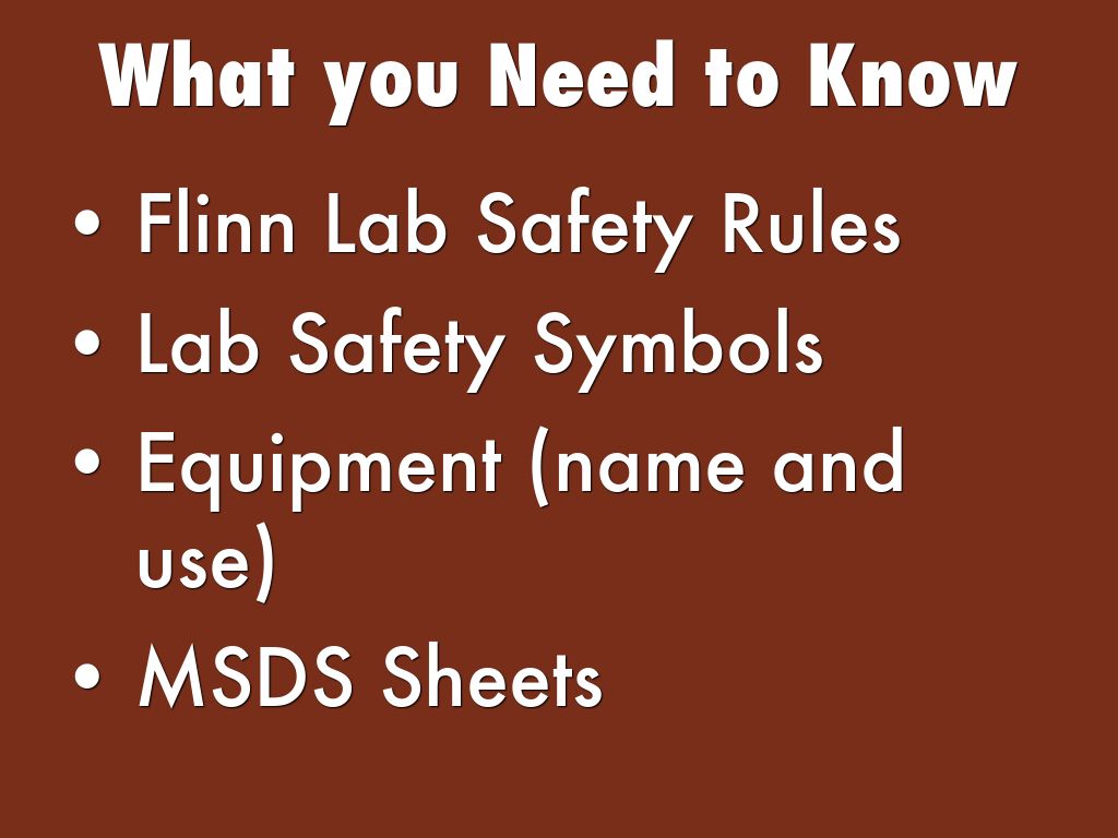 Rules - be familiar with ALL of the lab Safety Rules on your Flynn Safety Agreement. Remember - you must return a signed copy before doing lab.