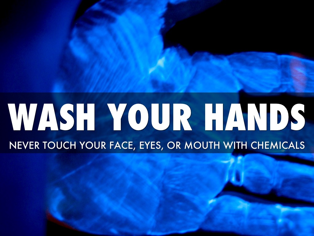 NEVER TOUCH YOUR FACE, EYES, OR MOUTH WITH CHEMICALS
