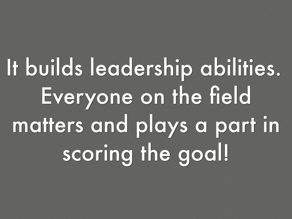 It builds leadership abilities. Everyone on the field matters and plays a part in scoring the goal!