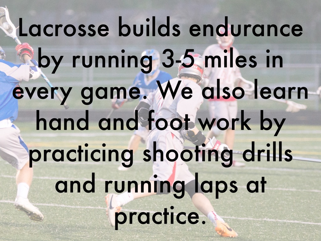 Lacrosse builds endurance by running 3-5 miles in every game. We also learn hand and foot work by practicing shooting drills and running laps at practice.