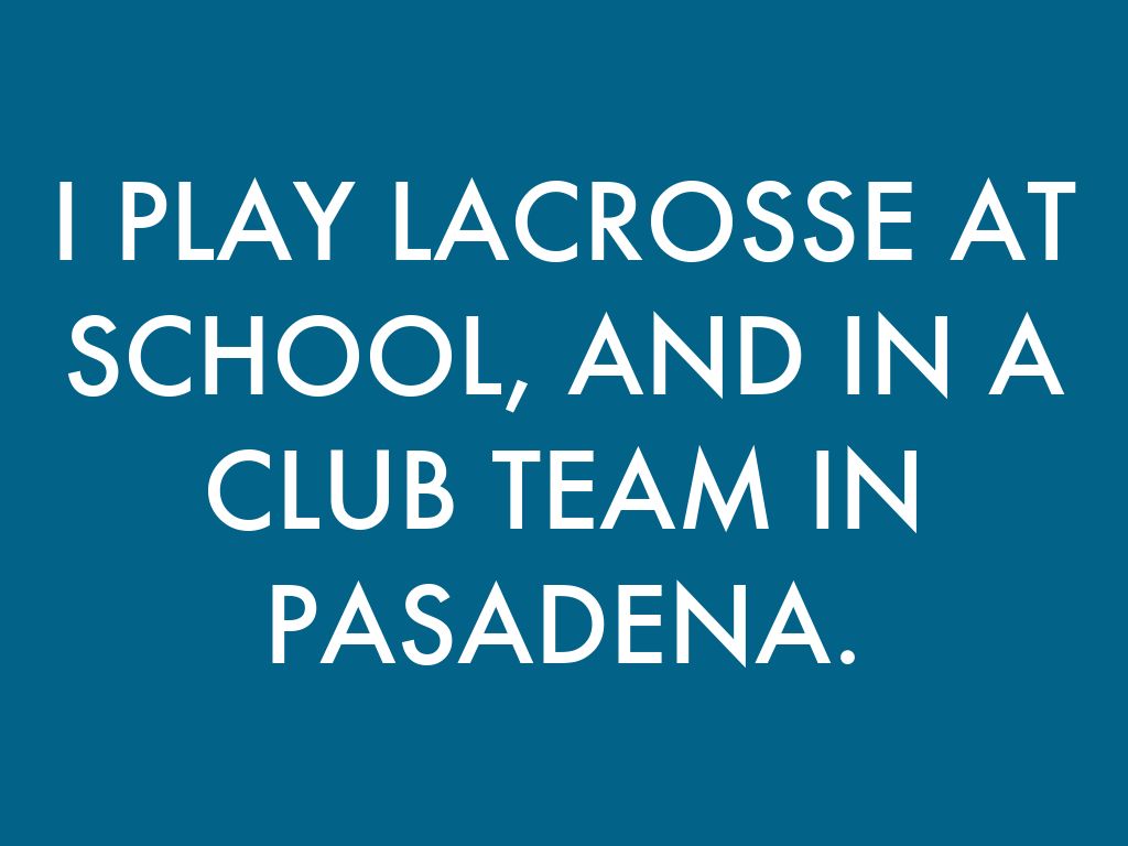 I PLAY LACROSSE AT SCHOOL, AND IN A CLUB TEAM IN PASADENA.